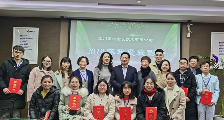 2020年1月6日,四川国测检测技术有限公司2019年度优秀员工表彰大会隆重举行。四川国测检测母公司锦美环保集团执行总裁杨明太、副总裁彭亚梅、人力资源总监袁敏,四川国测检测总经理陈绍华等领导出席了表彰大会。